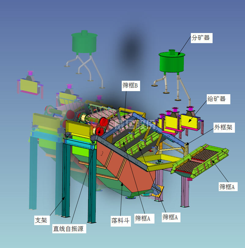 分布篩-Z,又稱直線篩,其原理為利用振動電機激振作為振動源,使物料在篩網上被拋起,同時向前作直線運動,物料均勻地進入篩分機的進料口,通過多層篩網產生數種規格的篩上物、篩下物、分別從...