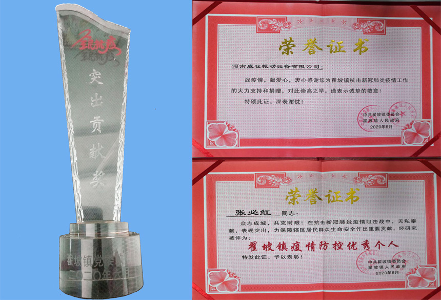 2020年6月25日上午,中共翟坡鎮委員會和翟坡鎮人民政府為抗擊疫情捐款捐物的愛心企業及個人舉行頒獎儀式,為河南威猛振動頒發了“榮譽證書”、...