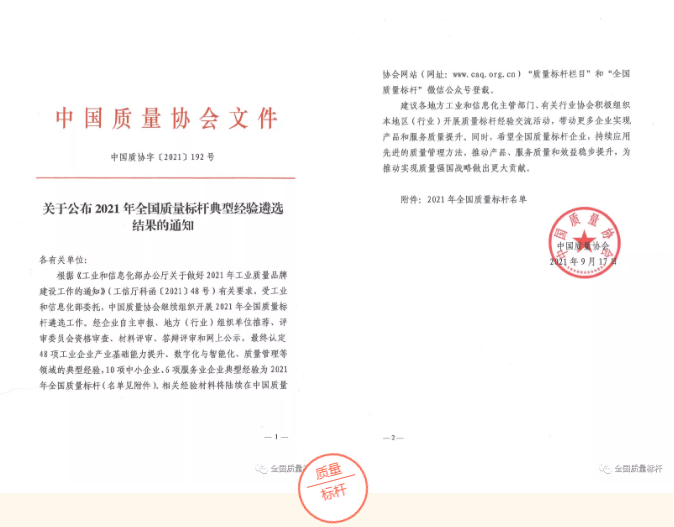 根據《工業和信息化部辦公廳關于做好2021年工業質量品牌建設工作的通知》(工信廳科函〔2021〕48號)要求,受工業和信息化部委托,中國質量協會組織開展...