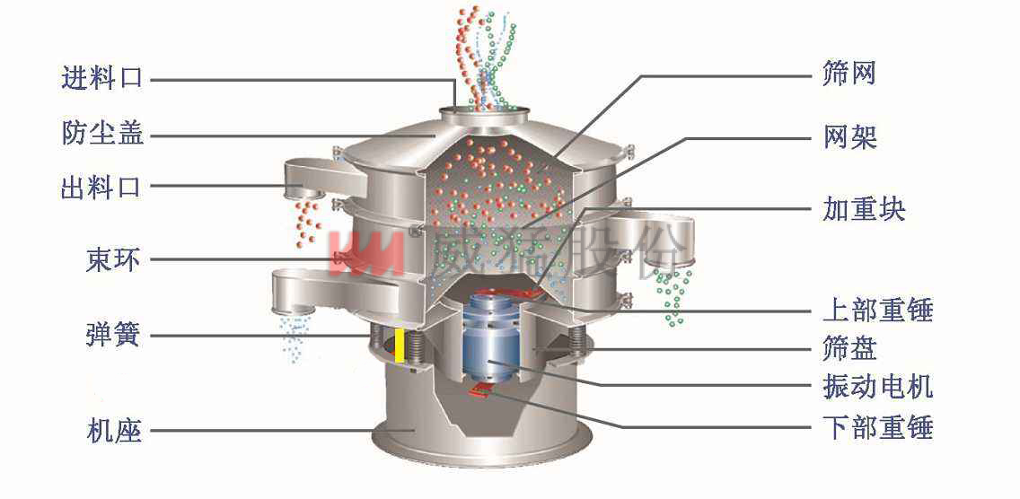 威猛振動分布篩-Z對粉狀、顆粒狀物料的篩選和分級,有獨特的效果,廣泛應用于化工、醫藥、食品、金屬、冶金、礦山等行業。其原理為利用振動電機激振作為振動源,使物料在篩網上被拋起,同時向...