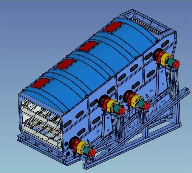 3、各個振動篩芯分節(jié)振動,可以實(shí)現(xiàn)各段篩面高頻低幅、低頻高幅的自由調(diào)節(jié),改變了傳統(tǒng)圓振篩同振源、同振幅、同振頻的振動方式。